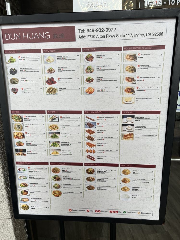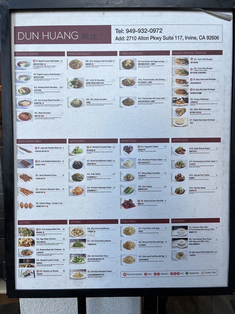 Dun Huang is a casual dining spot in Irvine that offers a variety of noodle soups, mixed noodles, and house special snacks. The menu includes must-try dishes like the Signature Lanzhou Beef Noodles and the Dun Huang Cold Noodles. Customers rave about the fast service, fair prices, and efficient ordering process. The restaurant provides vegan options, delivery, takeout, and caters to groups. Reviewers praise the flavorful beef noodle soup and the Pork Pita Burger. Despite some minor cleanliness and parking issues, Dun Huang remains a popular choice for affordable and delicious lunches. Overall, Dun Huang's menu selection, quick service, and tasty offerings make it a standout dining option in Irvine for noodle lovers.